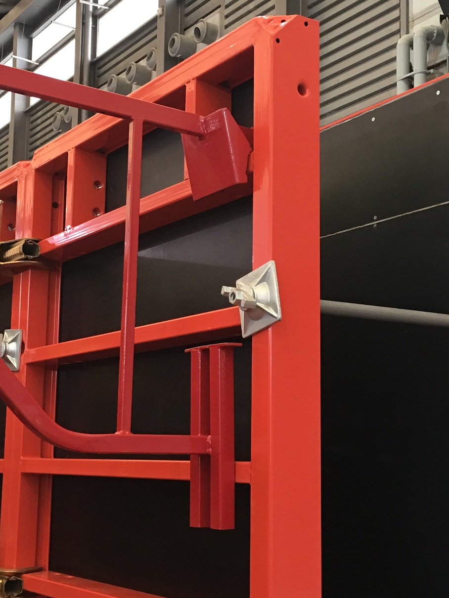120×60 mm closed steel sections and stiffening ribs make the panel extra-strong, so that it is withstanding a concrete pressure of 90 kN/sqm. Universal alignment couplers, walers and other connecting parts provided, will complete the whole System.
