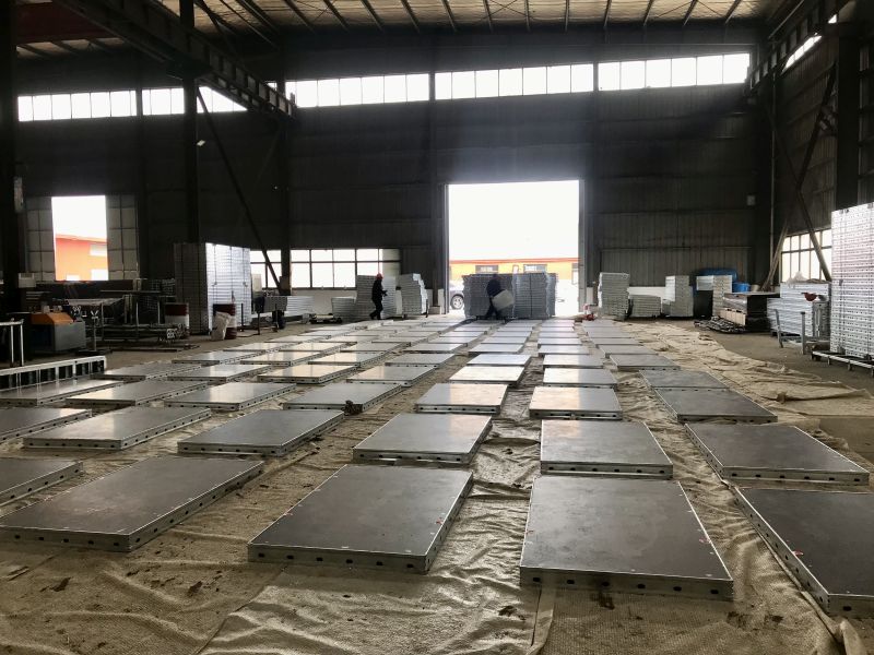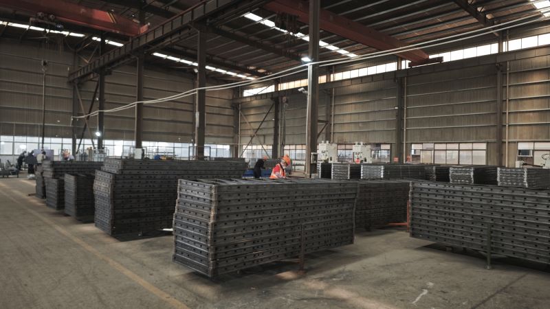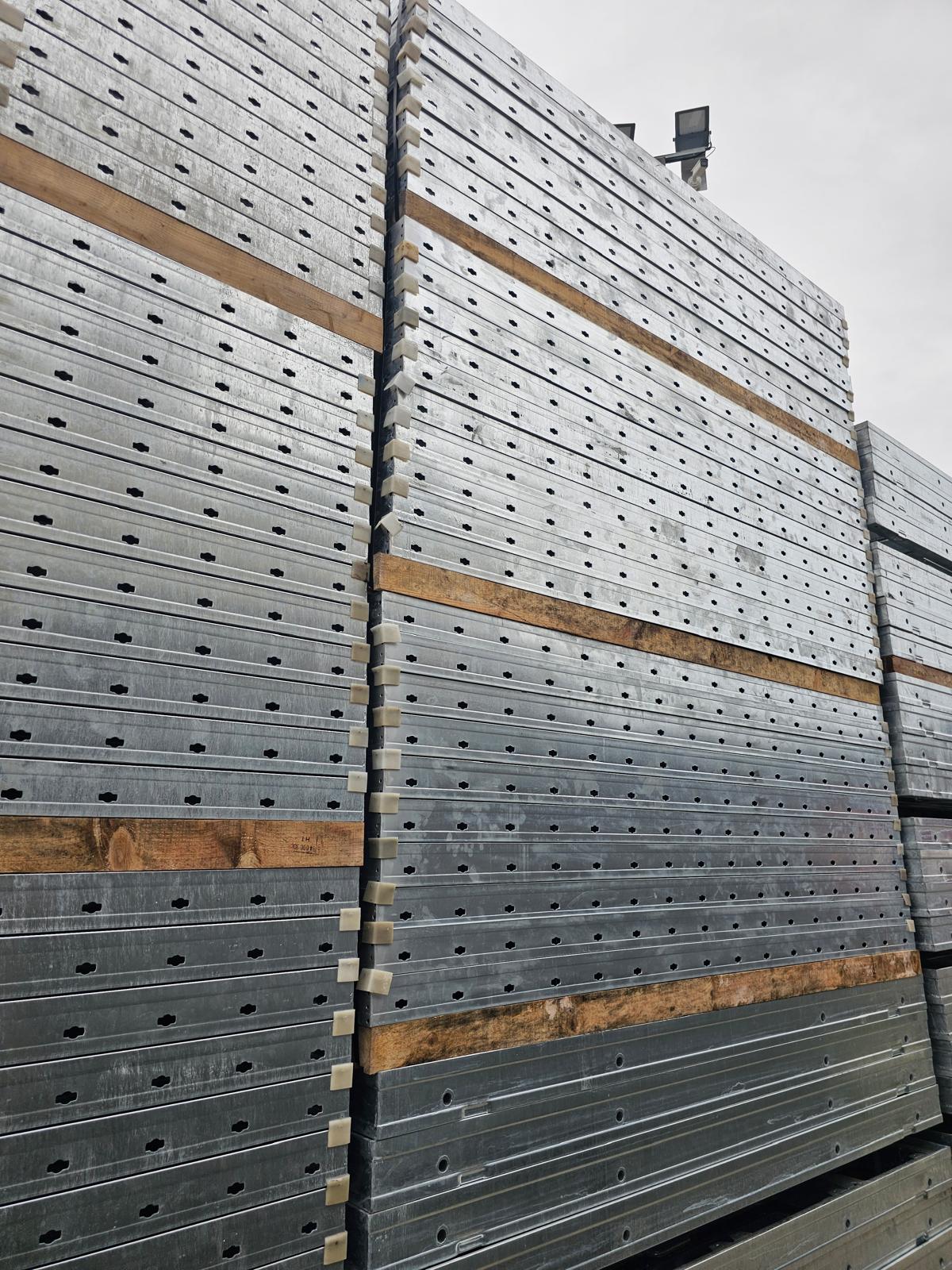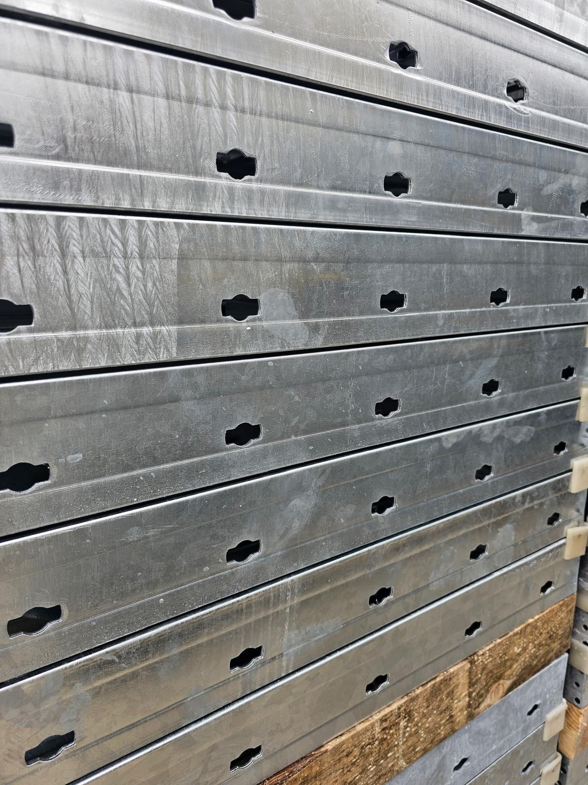 Hot dip galvanized steel frames, 15 cm film faced or plastic enhanced plywood as well as casted steel corners ensure long life span and easy cleaning.