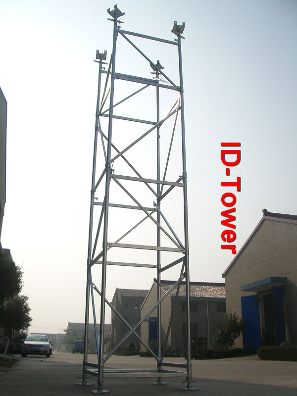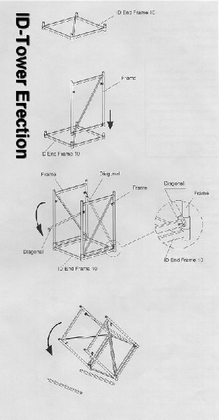 It takes a single man to quickly assemble an ID-Tower on its site. The heaviest component weighs less than 20 kg. Quick-action connectors integrated in the frames ensure high-speed assembly and disassembly with just a blow of the hammer. Easily lost, small accessory parts are not necessary for the ID-Tower system.
